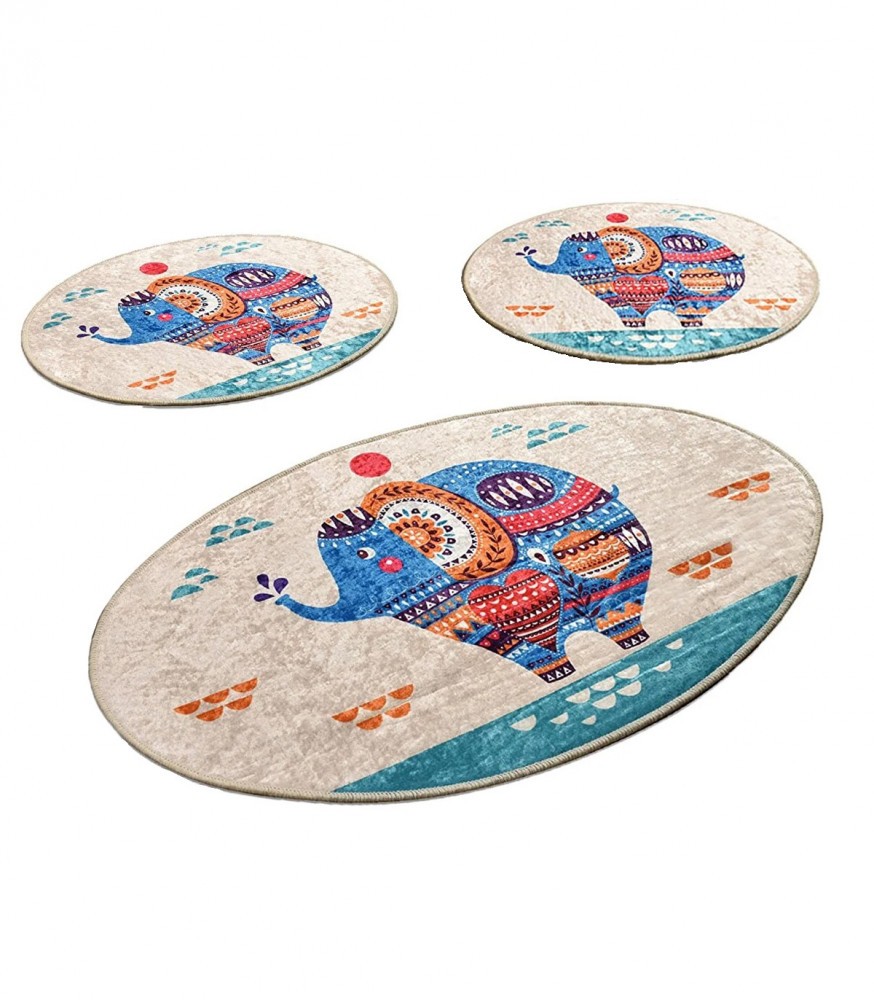 Set 3 Covorase baie Etnic Oval, 60 x 100 cm, 50 x 60 cm, Antiderapant, Multicolor