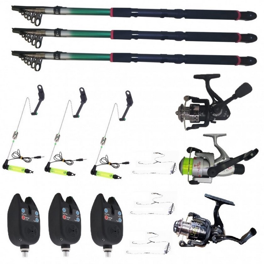 Set 3 lansete EastShark 3.6 metrii, 3 senzori eastshark, 3 swingeri led, 3 mulinete si forfati