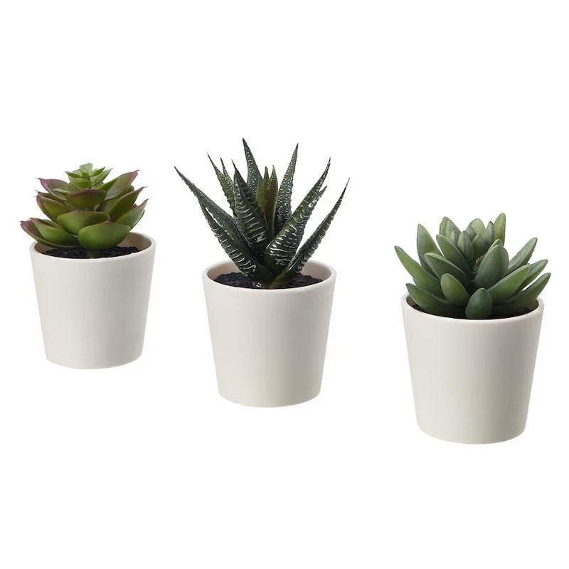 Set 3 plante artificiale pentru decorarea incaperilor, inaltime 12 cm, diametru ghiveci 6 cm