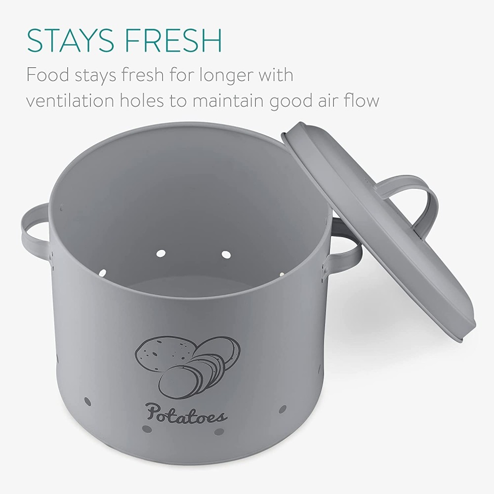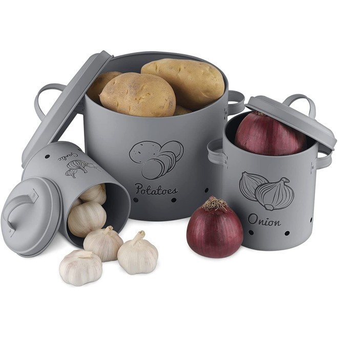 Orificiile mici din recipiente asigura circulatia aerului si deci asigura prospetimea acestora. Fiecare dintre aceste recipiente de depozitare este special conceput pentru a păstra cartofii, ceapa și usturoiul cât mai proaspăt posibil, având orificii de ventilație pentru a menține un flux de aer sănătos.