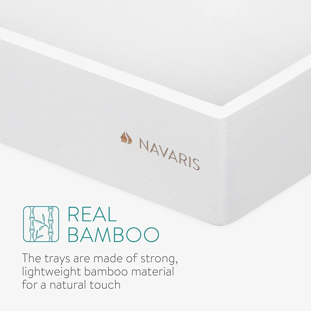 Surprindeți persoana iubită cu un mic dejun servit în pat cu acest set elegant de tăvi de servire din bambus de la Navaris! Serviți băuturi și gustări celor dragi și creați momente speciale alături de familie și prieteni!