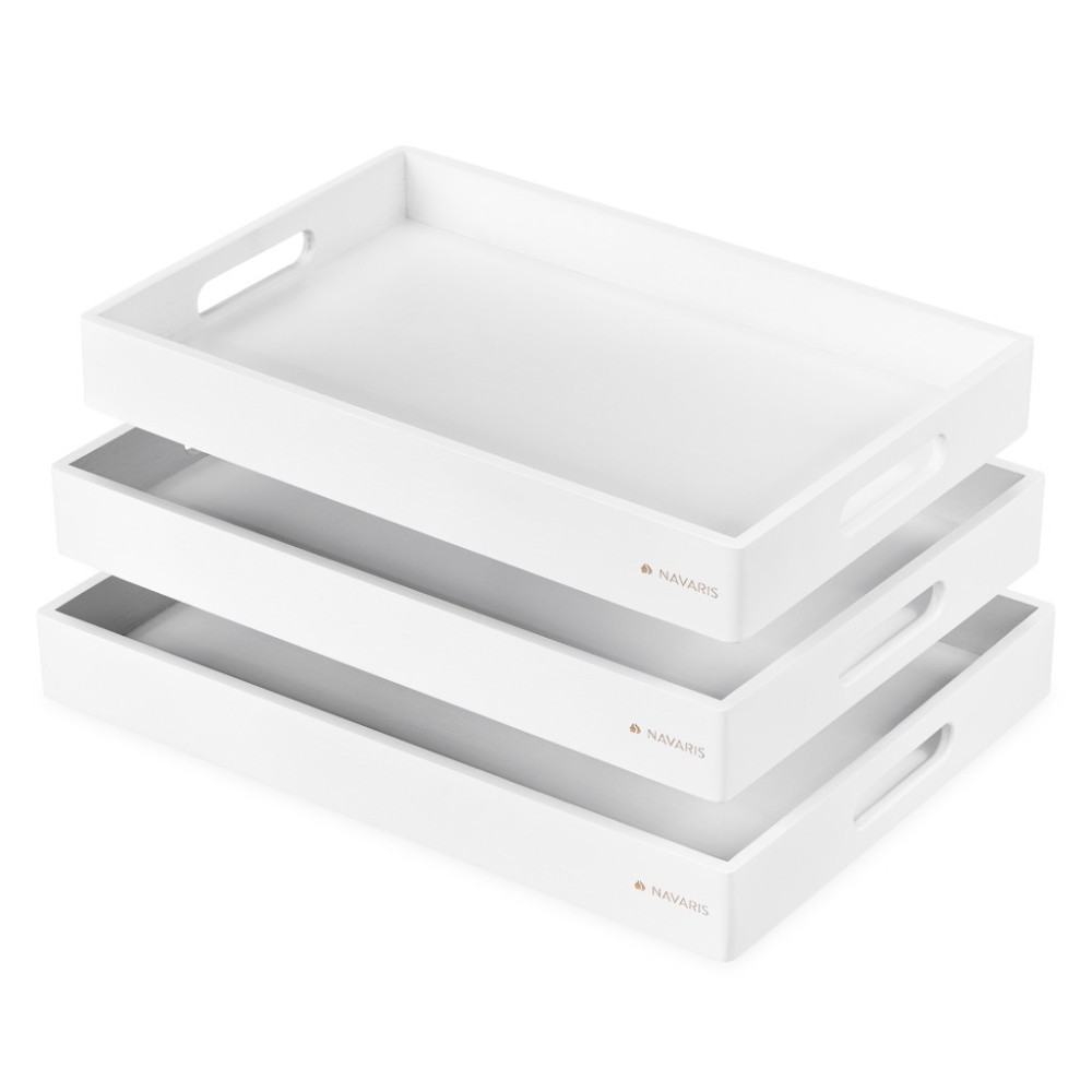 Pe lângă utilizarea pentru servire, tăvile pot fi folosite și pentru organizarea și transportul diverselor obiecte din casă: telefoane, laptopuri, telecomenzi, cărți, reviste etc. Fiecare tavă este dotată cu mânere pe ambele laturi pentru transport sigur și ușor.