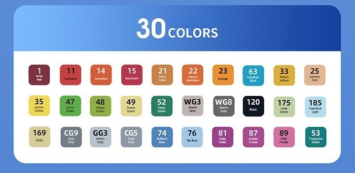 Set 30 Markere Cyrax – Bază de Ulei | Dublu Capăt: Subțire și Gros | Vârfuri 1 mm, 3 mm și 6 mm | Geantă Depozitare Oxford | 15 cm | Multicolor