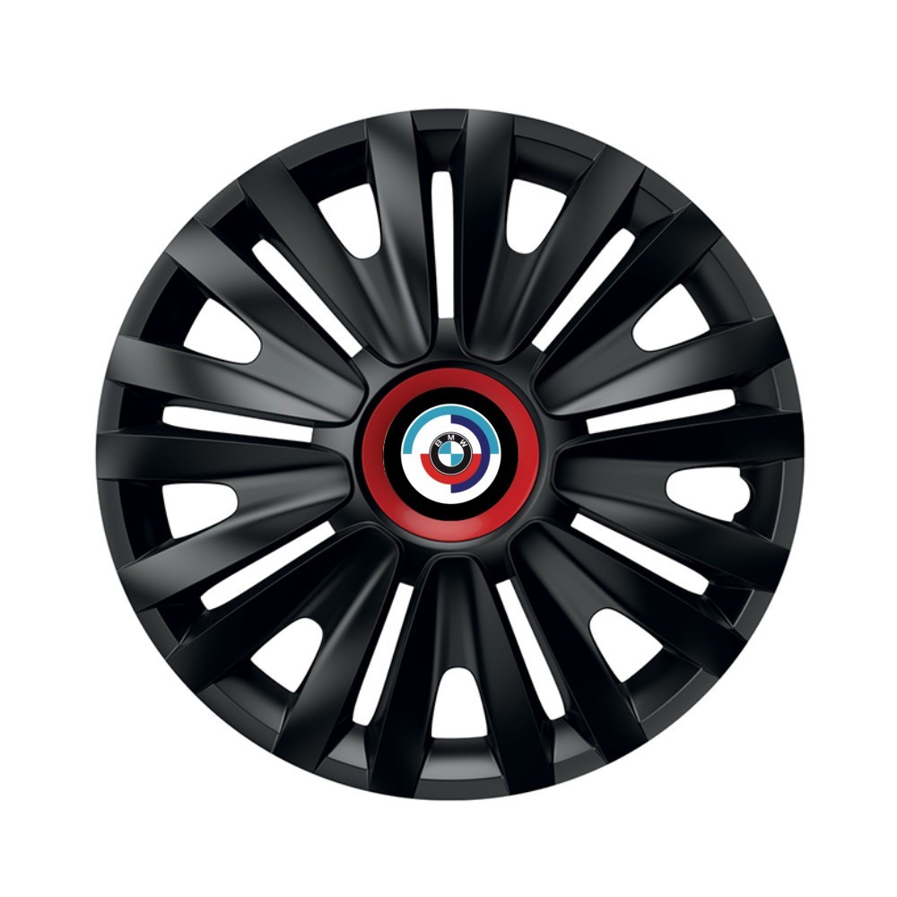 Set 4 Capace Roti pentru BMW Nou, model Royal Black Cu Inel Rosu, R15, BMW