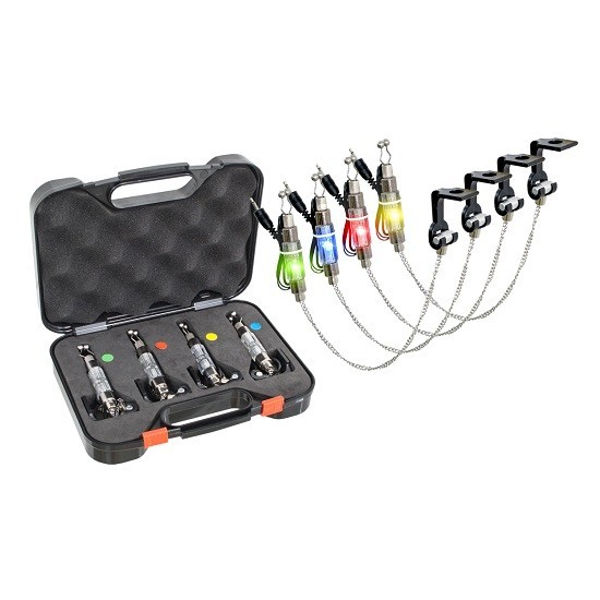 <p><span style="font-weight: bold;">Set 4 Hangere cu Iluminare Carp Expert</span></p><p><span style="font-weight: bold;">Cele patru swingere de înâltă calitate, în patru culori diferite, prevăzute cu lanț sunt puse pe piață într-o cutie elegantă ce oferă în același timp și protecție. Swingerele din set emit lumini galbenă, roșie, albastră și verde, arătând bine trăsăturile atât pe cele din tragere cât și pe cele în cădere. Cu funcționarea sa fiabilă și stabilă, funcționează ca o unitate indispensabilă în cadrul avertizoarelor radio moderne.</span></p>