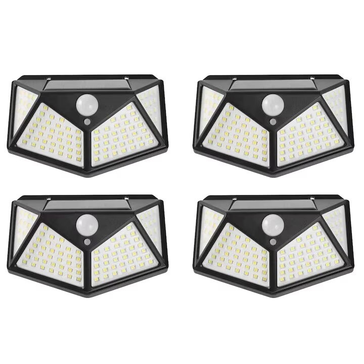 Set 4 Lampi solare de exterior 100 LED-uri Neco, senzor de miscare si lumina, 2200mAh