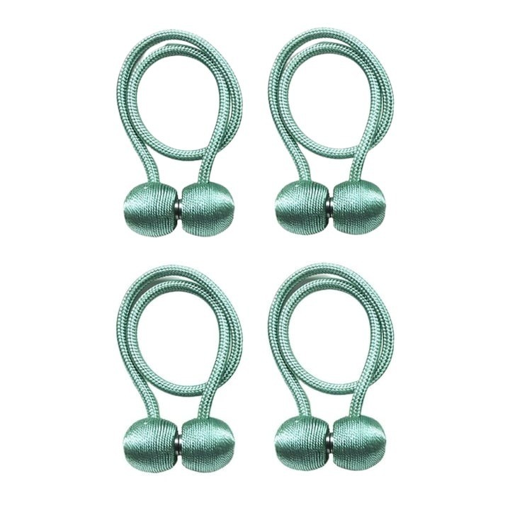 Set 4 magneti decorativi pentru perdele si draperii, tip snur, poliester, 44 cm - Verde,turcoaz