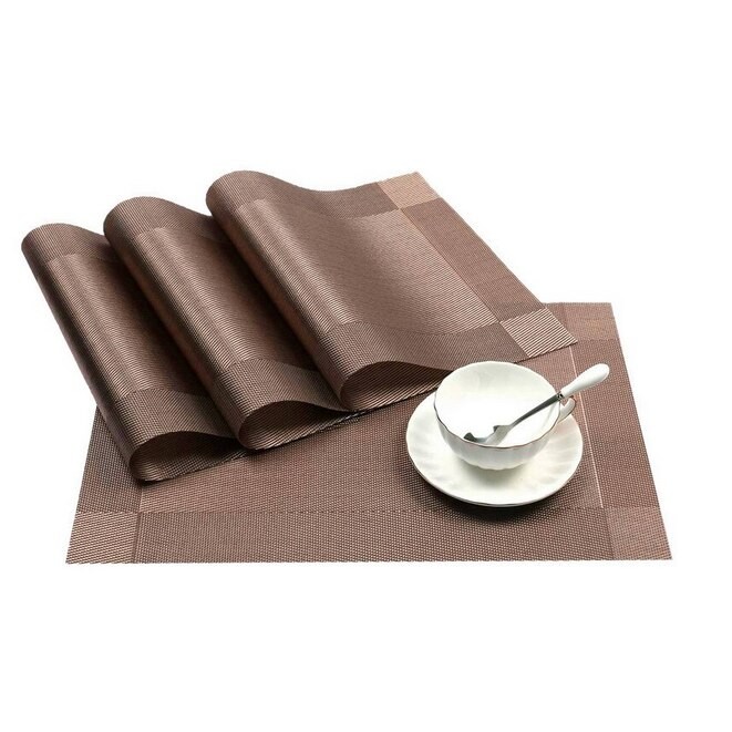 Set 4 naproane lavabile, TopBazar, PVC/Poliester, Termorezistente, Antiderapante, 30x45 cm, Maro