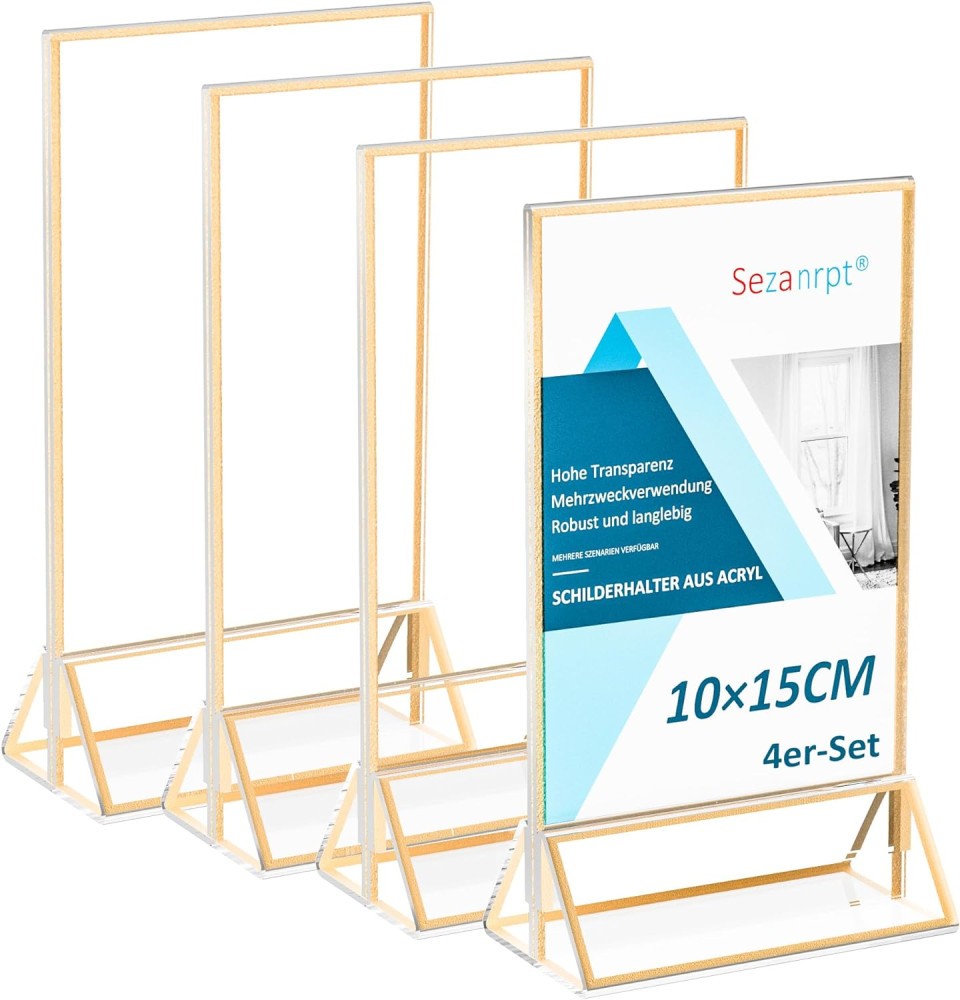 DESIGN DUBLĂ ȘI MARCHIE AURĂ: Suportul pentru semne acrilice vă poate afișa hârtia de desen sau meniul pe fețe duble. Cu o margine aurie vei primi un suport de afișare cu un cadru auriu. Arată foarte bine.