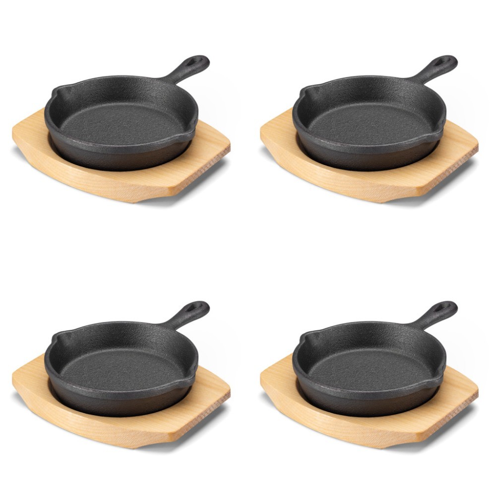 Set 4 tigai mici din fonta Navaris cu baza din lemn, 10.2 cm, 4", 426g, 60343.03