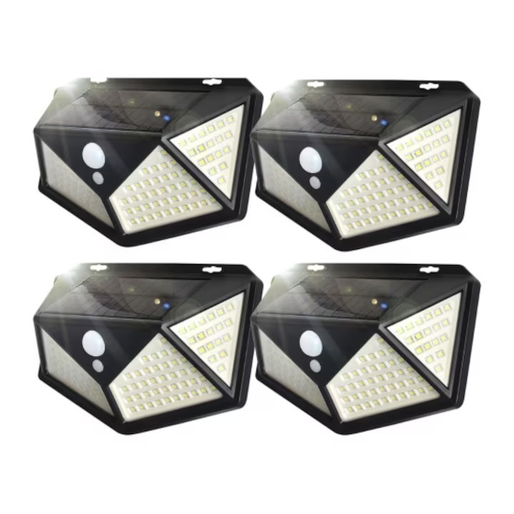 Set 4 X lampi solare de perete cu senzor de lumina si miscare 100 LED