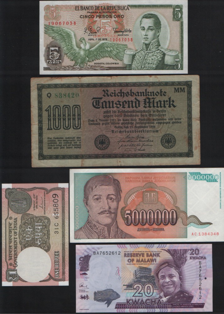 Set 5 bancnote de prin lume adunate (cele din imagini) #141