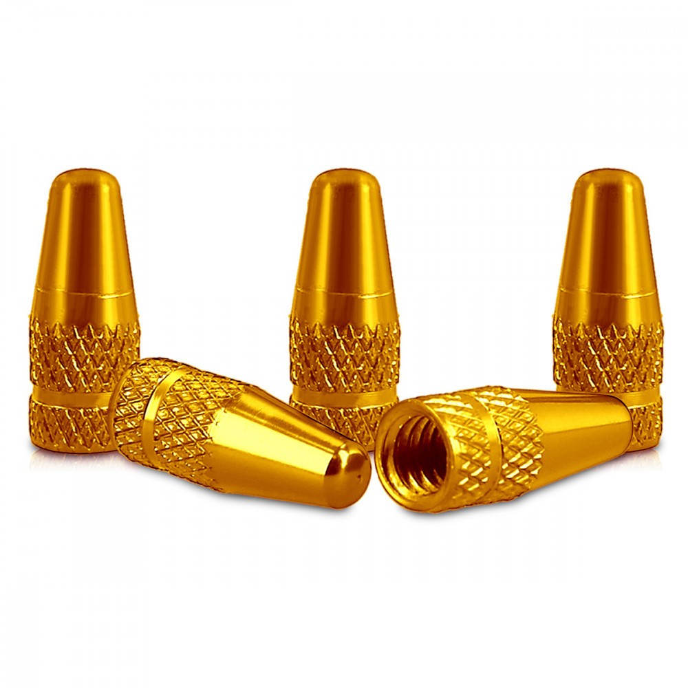 - Livrare: veti primi un set de 5 capace de supape metalice auriu. Le puteti folosi pe mai multe biciclete