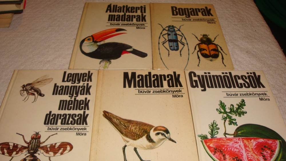 Set 5 carti - insecte , pasari , fructe - ilustratii multe - color - in limba maghiara - 1974-1979