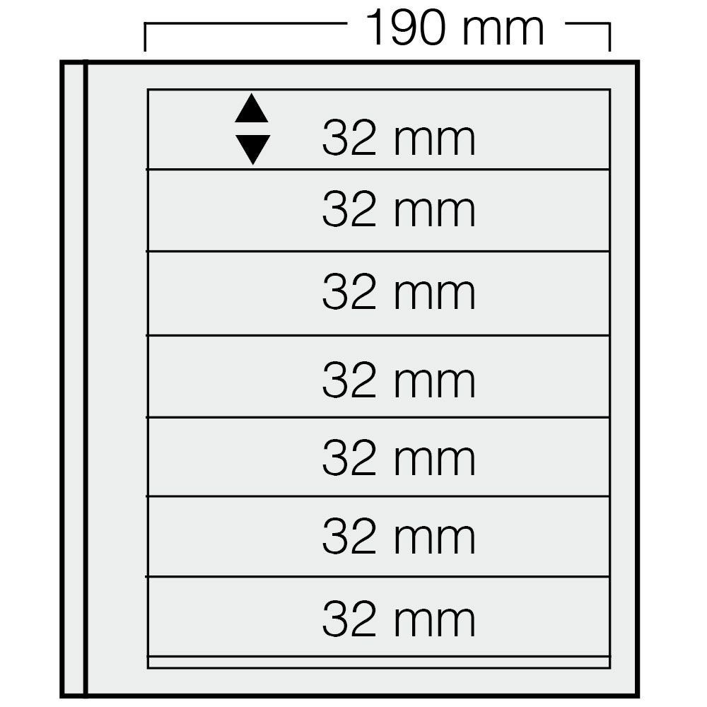 SAFE ALBUMS 617 PA Folii Dual System cu 7 buzunare de 32 x 190 mm Foi de carton cu Ph neutru si groase ofera un suport exceptional pentru timbre. Folii transparente, fara acizi chimici, cu 7 buzunare cu sudura speciala. Fiecare buzunar are o dimensiune de 32 x 190 mm. 14 perforatii - special concepute pentru albumele cu 14 inele din gama Favorit Dimensiuni: 270 x 297 mm Pachet de 5 pagini D-Blank.