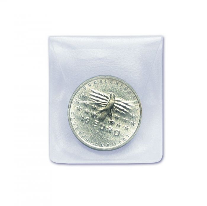 Poseta pentru monede de pana la 65 mm. Dintr-un material fara plastifiant, transparent cristal. Dimensiuni husa: 65 x 65 mm Set 50 buc
