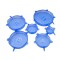 Culoare:: Albastru. Tip produs:: Set. Material:: Silicon. Continut pachet:: 6 x Capac flexibil. Caracteristici cheie:: Termorezistent. Forma:: Rotund. Numar bucati/set:: 6. Instructiuni utilizare:: Compatibil cuptor cu microunde.