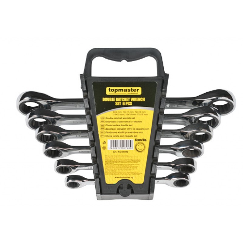 Set 6 chei duble inelare cu clichet Cr-V Top Master, 8-19