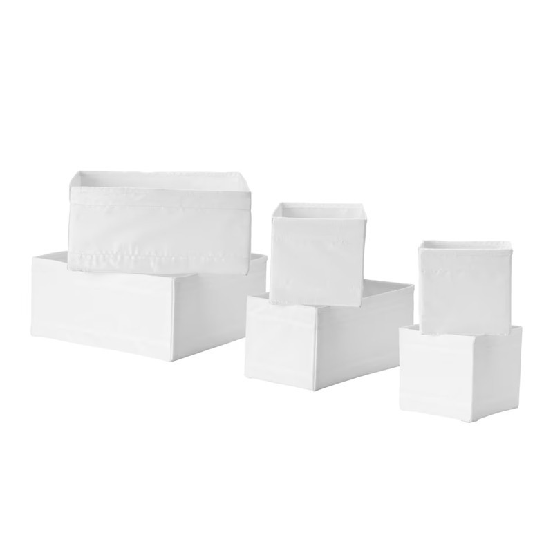 Set 6 cutii pentru organizarea sertarelor, poliester reciclat, utilizare universala, Alb
