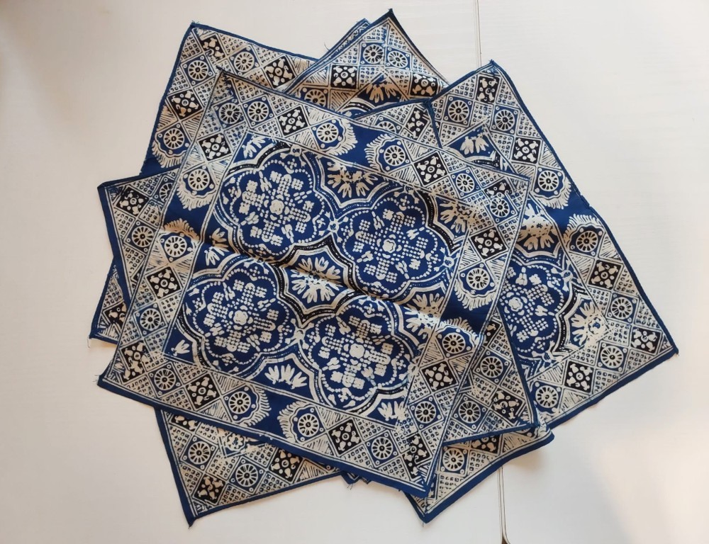 Set 6 servete de masa, material textil (bumbac) imprimat, model cu albastru, noi (neutilizate), 28x28cm