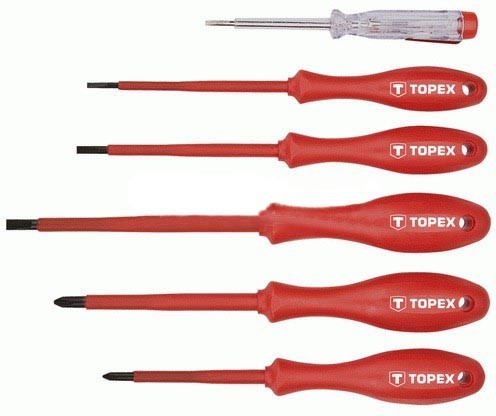 Set 6 surubelnite, 1000VSetul conĂˆâ€şine:Surubelnite plate 1000V VDE:3 x 100 mm4 x 100 mm5,5 x 125 mm Surubelnite cruce Phillips PH 1000V VDE:PH1 x 80 mmPH2 x 100 mmTester tensiune 220-250V