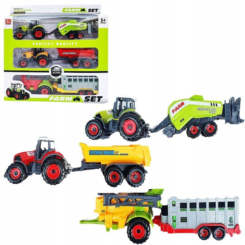 Remorcile pot fi schimbate intre ele, procesul de schimbare fiind foarte usor. Piesele sunt realizate din ABS atent finisat fara a exista riscul de accidentare. Utilajele pot fi folosite atat in spatii interioare cat si exterioare punand la incercare capacitatea acestora. Jocul in nisip sau gradina va fi mult mai atractiv cu acest set de utilaje agricole.