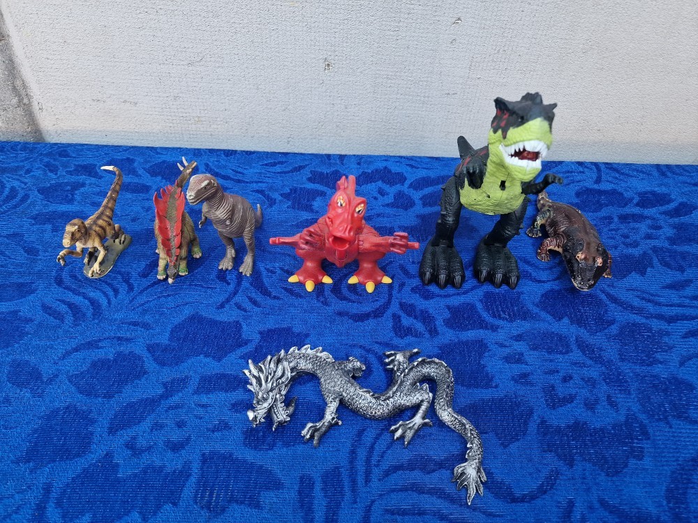 Set 7 figurine dinozauri, Plastic, Multicolor, jucarii copii