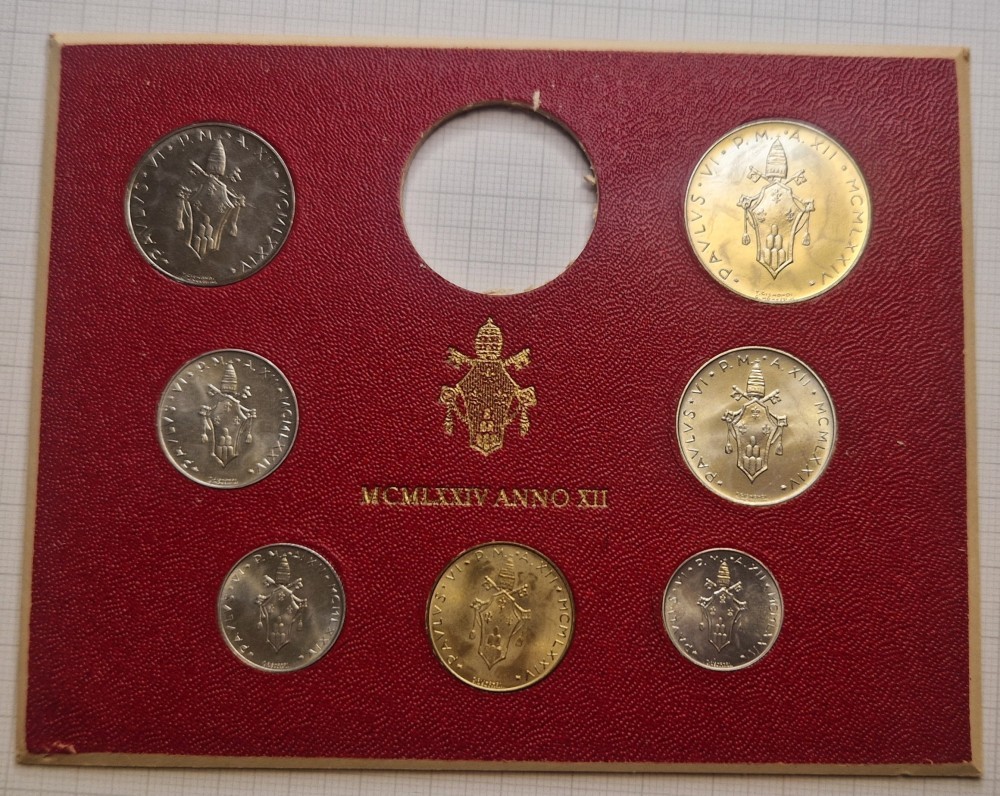 Set 7 monede Vatican, MCMLXXIV, 1974, 1,2,5,10, 20, 50, 100 Lire, metal comun, 4 lei moneda