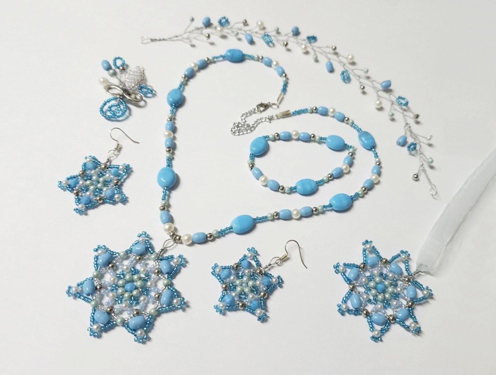Set albastru Fulgi de nea si stelute unicat, evenimente, lucrat manual