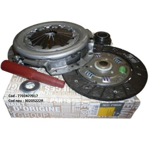 Kit ambreiaj Dacia Logan 1,6 benzina 8 valve . Setul contine 3 piese , placa presiune , disc ambreiaj si rulment presiune. Cod piesa originala 7701477017 , cod inlocuitor 302052223R . Piesa este de origine Dacia - Renault si se potriveste si la unele motorizari 1,4 si 1,6 Renault Clio , Megane I