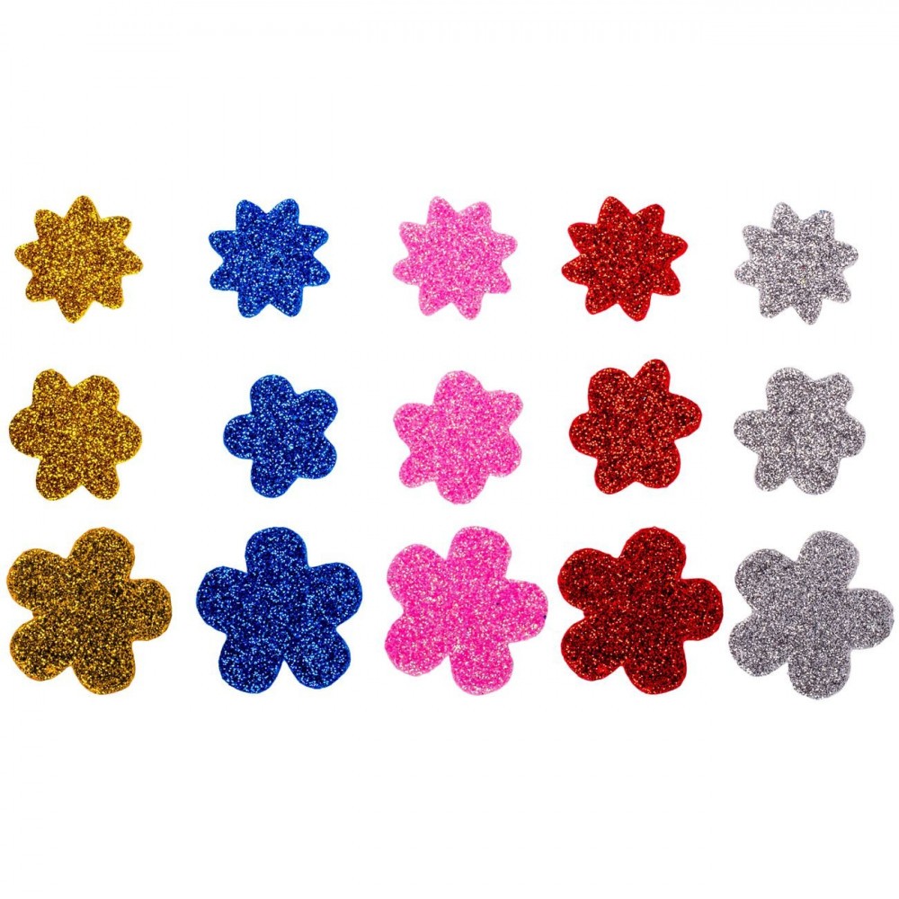 Set Autocolante Spumă, Flori, Multicolor, Glitter, 40 Bucăți
