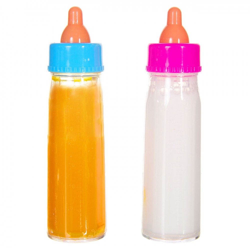 Set Biberoane Jucărie, 2 Buc, Material Plastic, Capacități Diferite, Culori Portocaliu și Alb
