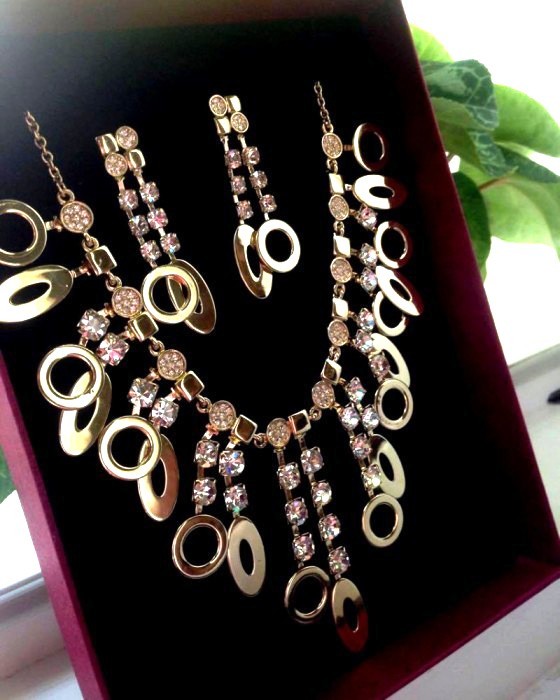Set- Cercei,lantisor si pandantiv placat cu aur 18k si cristale SWAROVSKI !