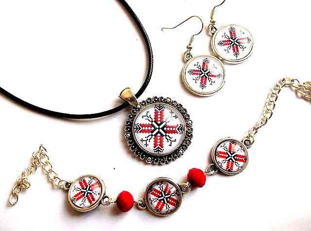 Set bijuterii cu motive traditionale, set bijuterii cercei, bratara si pandantiv 32948