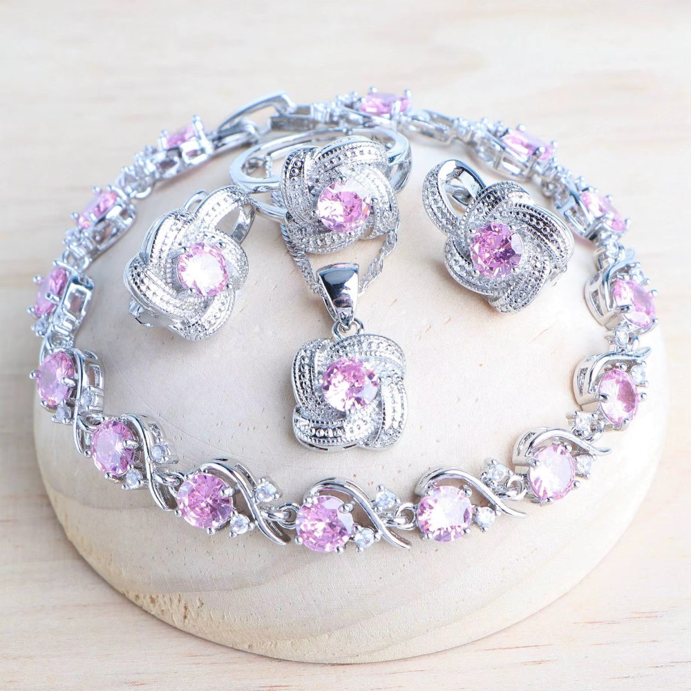 Set bijuterii placate cu argint 925, cu cristale de zirconiu roz-cuart