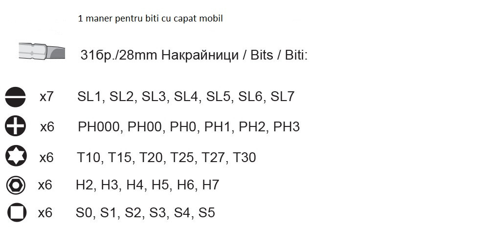 Set biti de precizie cu maner surubelnita 32 piese CRV Gadget DIY