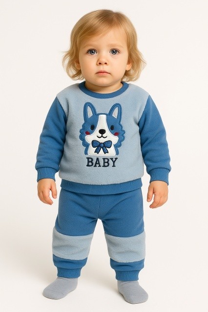 Bluza are o textura pufoasa pe partea frontala si un imprimeu adorabil cu vulpita, realizat in tonuri calde. Manecile si terminatiile sunt prevazute cu mansete elastice ce pastreaza forma si fac imbracarea usoara. Pantalonii asortati au talie elastica moale, care nu strange burtica, si zone pufoase pe picioruse, oferind un plus de caldura si stil.