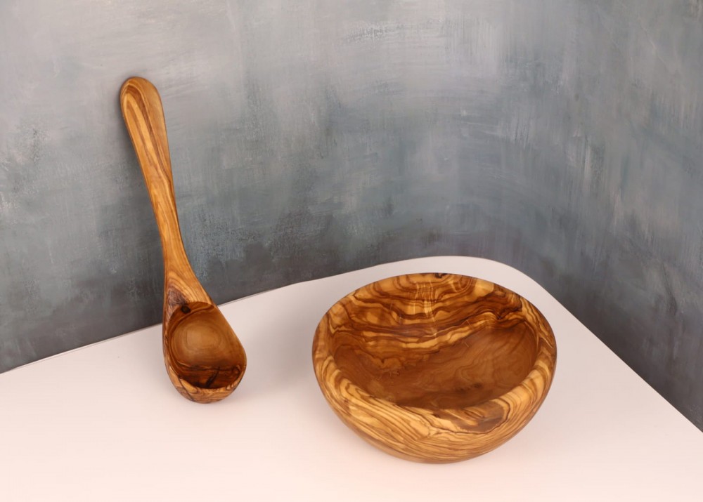 Utilizarea bolurilor și polonicelor din lemn de măslin: Servire și prezentare: Bolurile din lemn de măslin sunt ideale pentru servirea salatelor, fructelor sau snack-urilor. Aspectul lor natural și elegant adaugă un plus de frumusețe mesei. Polonicele din lemn pot fi folosite pentru a servi supe, tocănițe sau alte preparate lichide, având un aspect rustic atrăgător. Prepararea alimentelor: Poți folosi bolurile din lemn pentru a amesteca ingrediente, cum ar fi salatele sau aluatul pentru prăjituri. Polonicele din lemn sunt perfecte pentru amestecarea preparatelor în oale, fără a zgâria suprafețele acestora. Depozitare: Bolurile pot fi folosite și pentru a depozita diverse alimente, cum ar fi nuci, semințe sau condimente, păstrându-le în același timp la îndemână. Avantajele produselor din lemn de măslin: Durabilitate: Lemnul de măslin este un material foarte rezistent, care nu se deformează ușor și nu se crăpă. Produsele din acest tip de lemn pot dura ani de zile dacă sunt întreținute corespunzător. Proprietăți antibacteriene: Lemnul de măslin are proprietăți naturale antibacteriene, ceea ce îl face o alegere sănătoasă pentru utilizarea în bucătărie. Estetică: Produsele din lemn de măslin au o textură și un colorit natural deosebit, fiecare piesă fiind unică. Acestea adaugă un aspect cald și primitor în orice bucătărie. Ușor de întreținut: Îngrijirea produselor din lemn de măslin este simplă: se recomandă spălarea manuală cu apă și săpun și evitarea mașinii de spălat vase. De asemenea, este bine să le hidratezi periodic cu ulei de măslin pentru a preveni uscarea. Sustenabilitate: Lemnul de măslin provine dintr-o sursă regenerabilă, iar utilizarea acestor produse contribuie la un stil de viață mai ecologic. Pachetul conține: Bol 18 cm Polonic: 25 cm