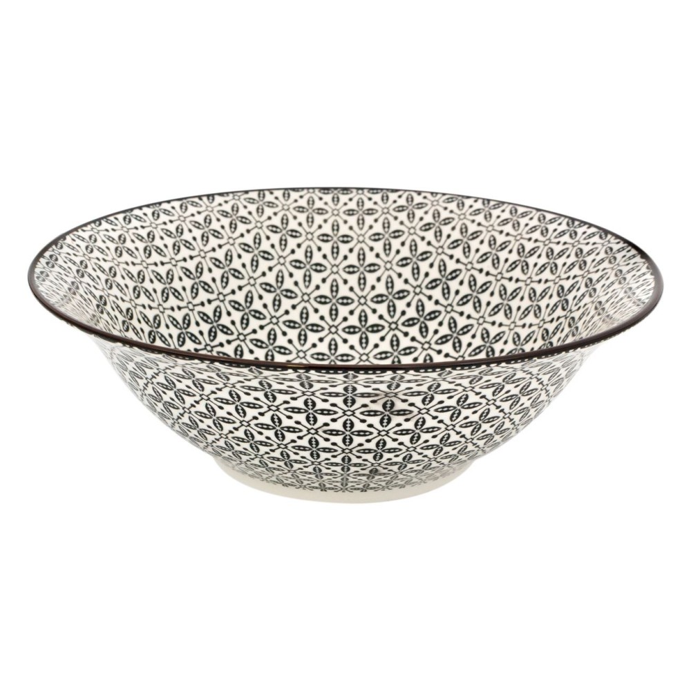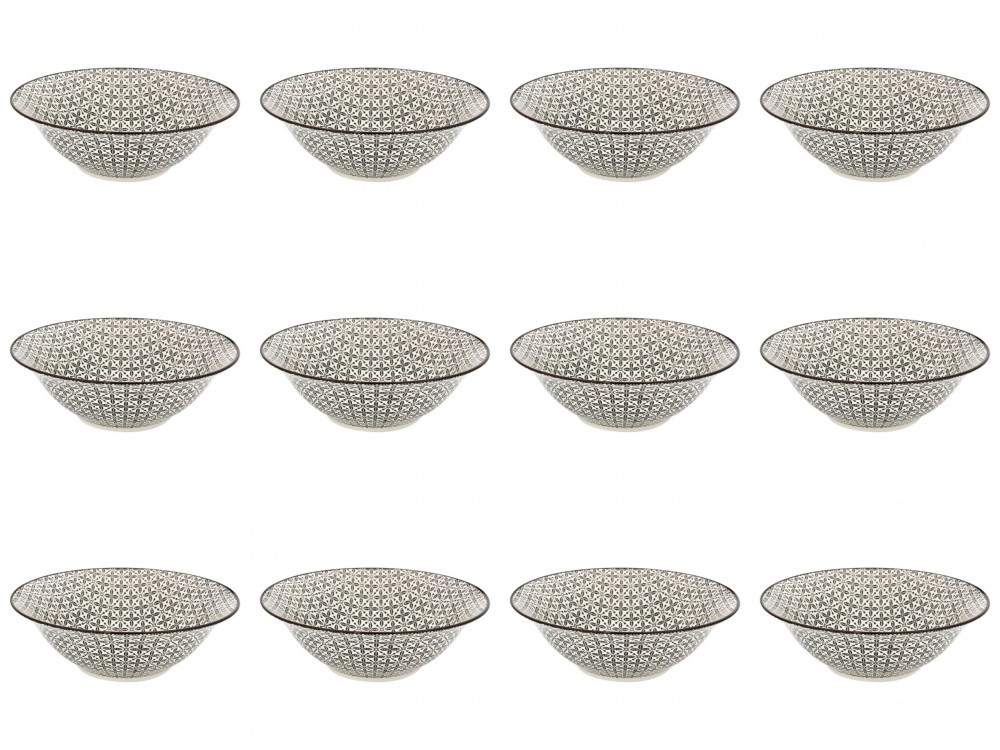 Set de 12 boluri din Portelan Bej cu Model Negru 1.65lt