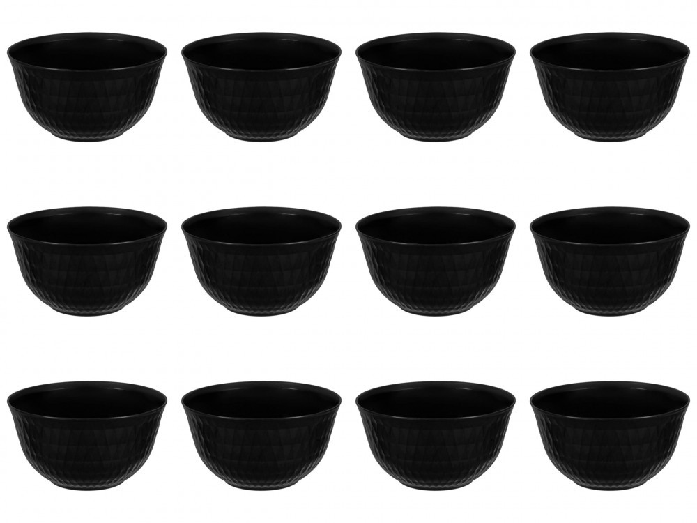 Investiti in acest set de 12 boluri din plastic negru model Diamond si bucurati-va de beneficiile lor durabile si versatilitatea lor in bucatarie!