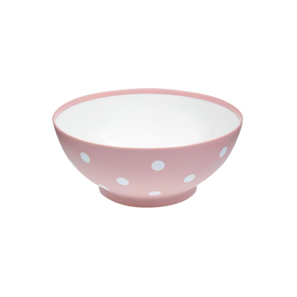 Adu-ti un plus de stil si functionalitate in bucataria ta cu acest set de 8 bucati de boluri de plastic alb cu buline roz mat!