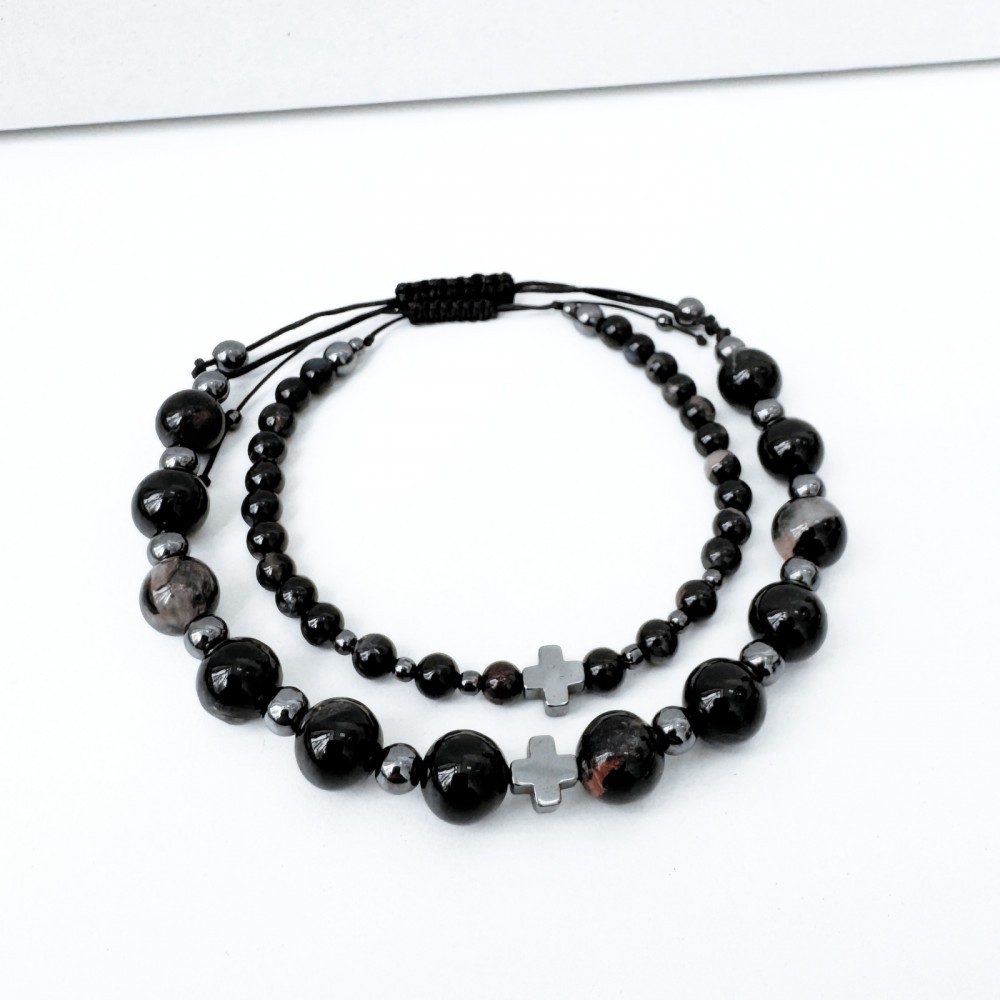 Set bratari cuplu din turmalina neagra si hematit - Protectie energie negativa