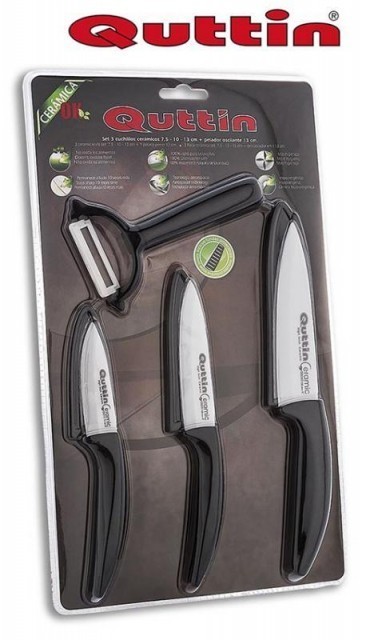 Set 4 piese (3 cutite si un curatator legume/fructe) cu lama din ceramica