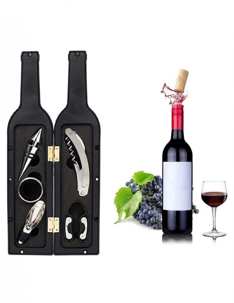 Set Cadou Accesorii Vin in forma de Sticla 6in1 culoare Neagra