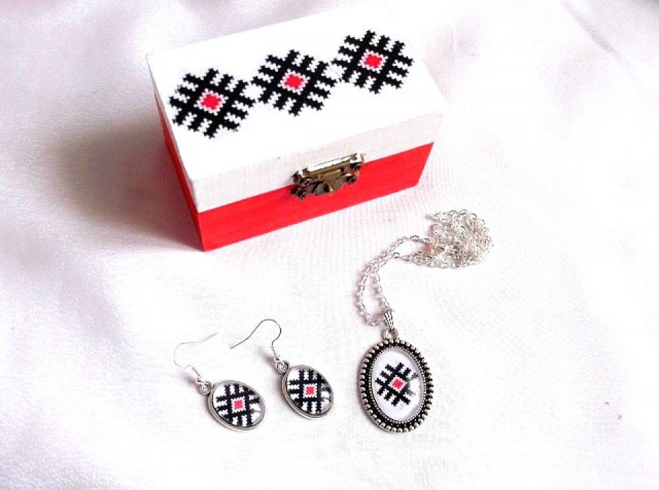 Set cadou, cutie si bijuterii femei, set cu motive traditionale 33816