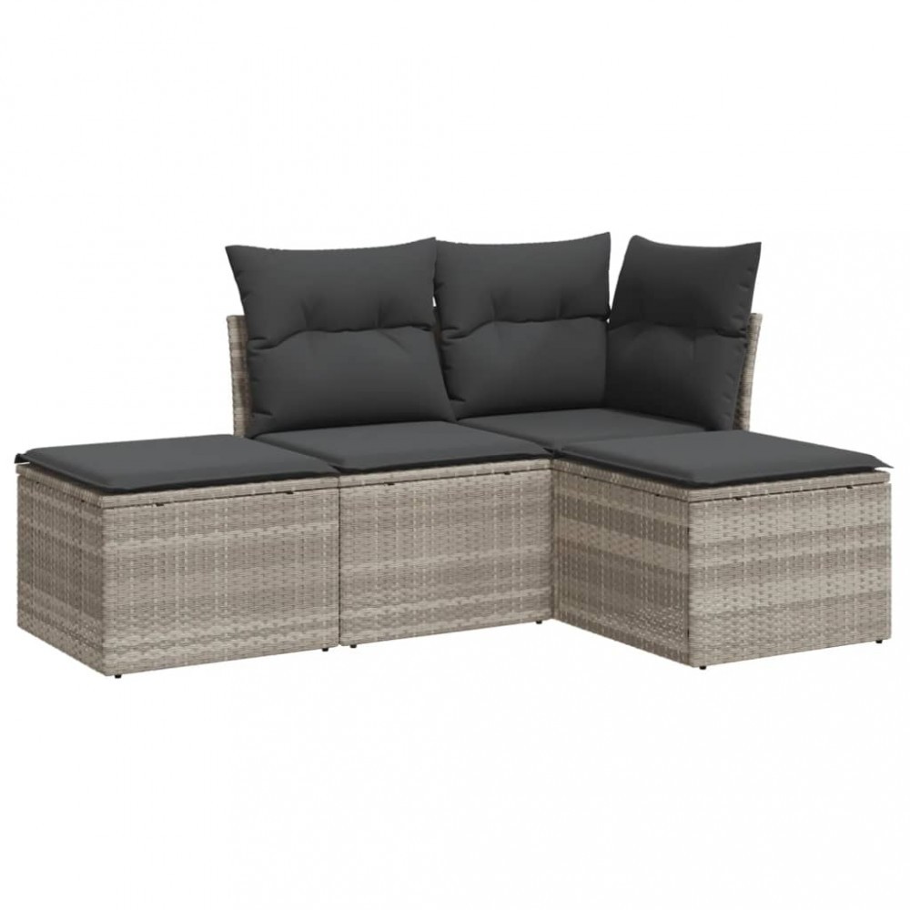 Set canapea de gradina cu perne, 4 piese, gri deschis poliratan