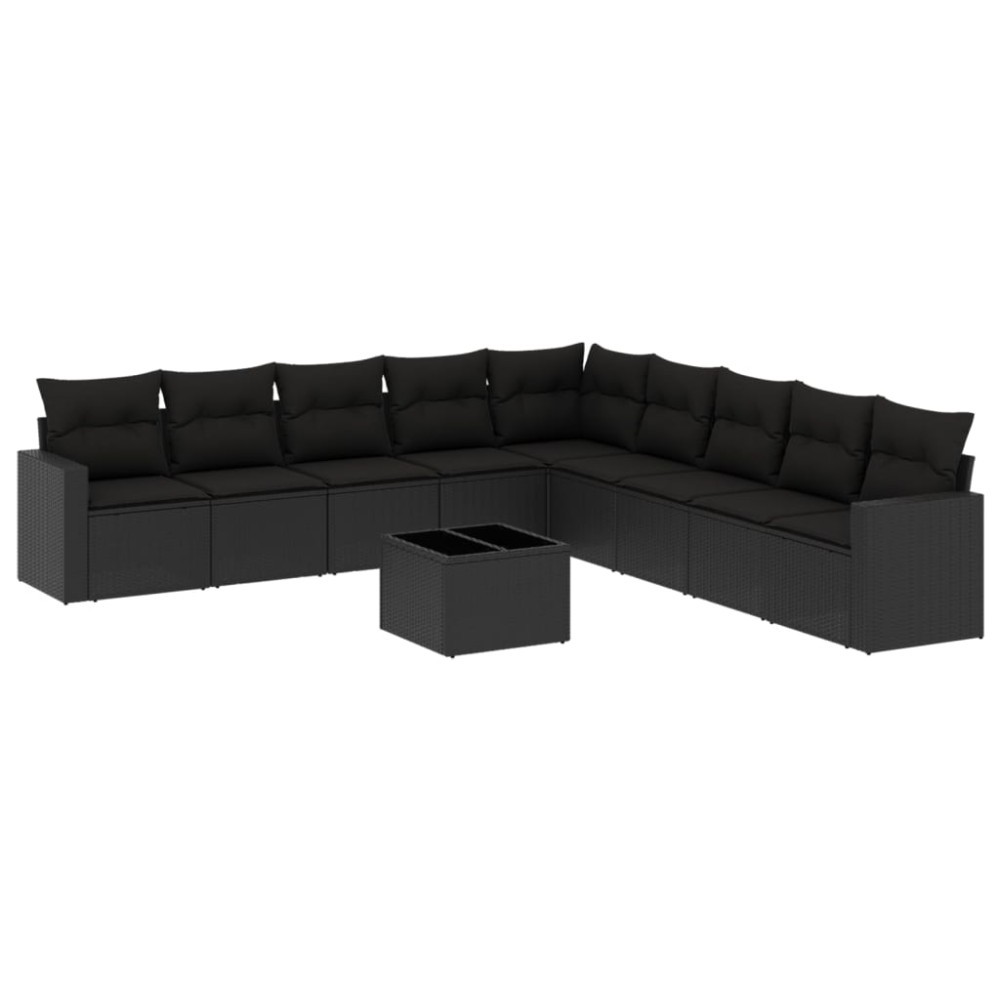 Set canapele de gradina cu perne, 10 piese, negru, poliratan