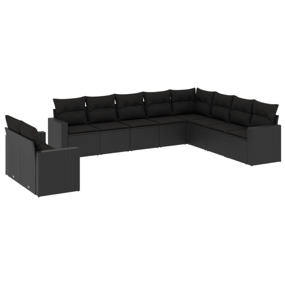 Set canapele de gradina cu perne, 10 piese, negru, poliratan