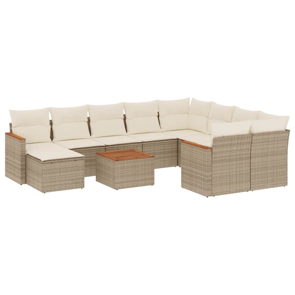 Set canapele de gradina cu perne, 11 piese, bej, poliratan