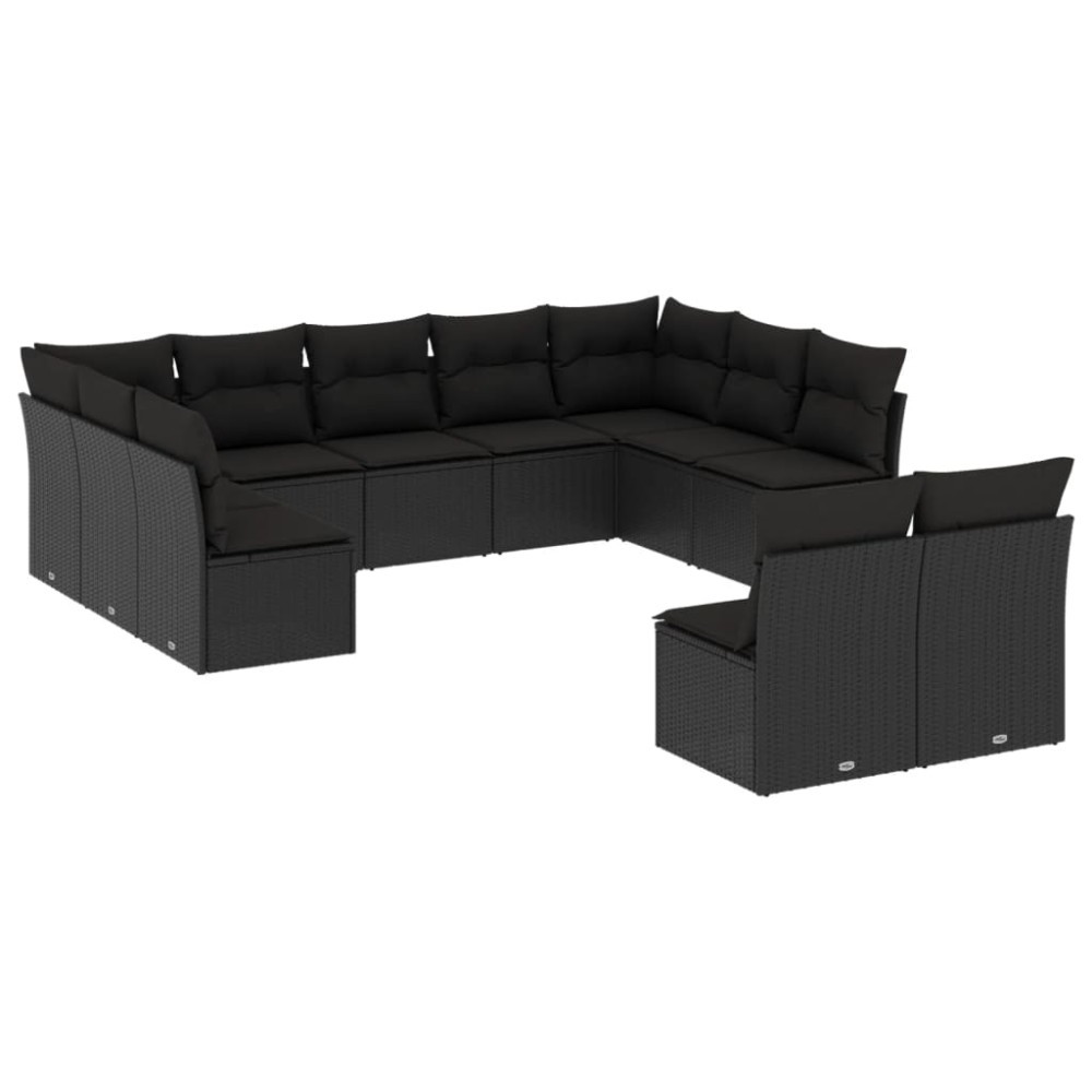 Set canapele de gradina cu perne, 11 piese, negru, poliratan